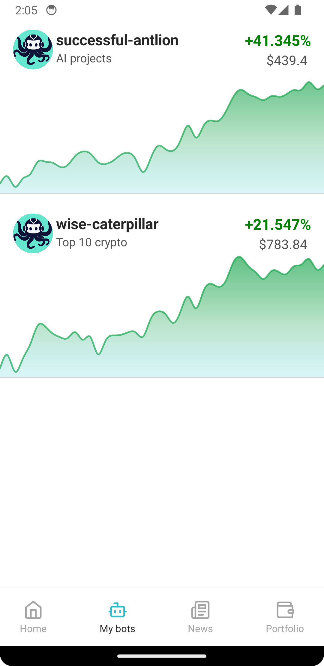 You can follow your OctoBots portfolio, orders, trades and historical performance from your phone with our Android application. You can also install the web application to have the same experience on any smartphone or computer.